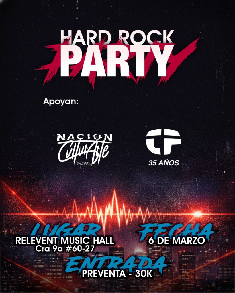 Entradas: Disponibles en https://biciq.com/info-event/colombia-hard-rock-party-vol.-i-d54071ef